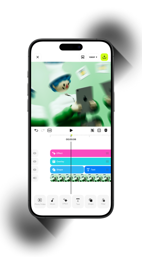 Blurrr is a professional video editing app designed for mobile editing enthusiasts. It is powerful yet extremely easy to use. You can use keyframes and graphics to meet your original needs, and the upper limit of professional editing is high. Even if you don't have professional skills, you can easily make high-quality videos through presets and templates, and the threshold for getting started is extremely low.